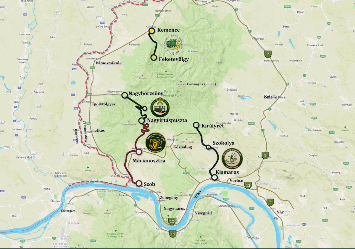 A Szob és Nagybörzsöny közötti erdei vasúti hálózat teljes, 22 kilométer hosszú vonala. A transzbörzsönyi vasút ma Magyarország egyik leglátványosabb hegyi pályája, a vonala szűk patakmedrek partján, sűrű erdőkben kanyarog, irányfordítóval és hármas hurokkal győzi le a meredélyeket. Azonban változatos vonalvezetés többféle üzemeltetési viszonyt jelent, ez az oka, hogy a vonalon egy helyen, Nagyirtáspusztán (a vízválasztón) át kell szállni másik szerelvényre.